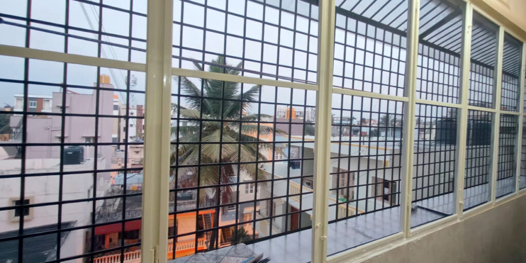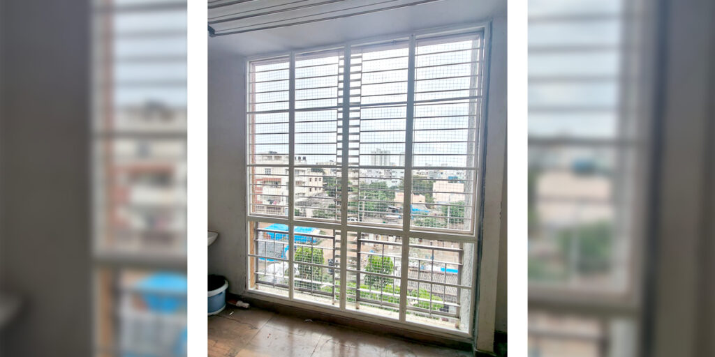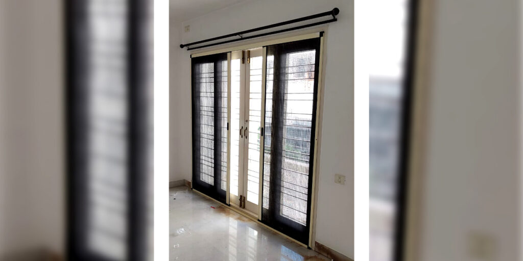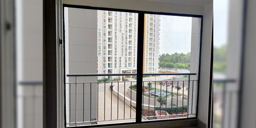 Openable aluminium mosquito net door with rust-proof SS 304 mesh for balconies and doors.